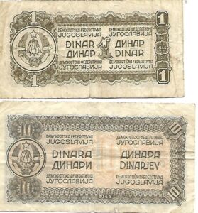 Iz vsega tega zaklada mi je uspelo sestaviti serijo bankovcev iz leta 1944. To je bila prva izdaja bankovcev novo nastale države, kot boste videli je to denar najbolj enostavne oblike in dizajna, takratnega plačilnega sredstva, ki ga zgodovina sploh pozna. Denarne enote so potem razdeljene v določeno vrednostno lestvico. Opisal bom samo bankovec v vrednosti enega dinarja. Tiskan leta 1944, kvaliteten papir iz tekstilnih vlaken. Velikost je 48mm x 92 mm. Prva stran tega enostavnega bankovca ima grb s plamenicami iz leta 1943. (letnica AVNOJA), ter označbo vrednosti in nazivom takratne državne tvorbe. Druga stran prikazuje partizana, na desni strani ter šest novo nastalih državnih tvorb. Denarne enote tvorijo vrednostno lestvico do leta 1980. Torej do Titove smrti. Po tem obdobju sledi 10 let inflacije, ki se opaža po razstočih številkah bankovcev, ter s tem padcu vrednosti.