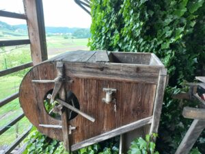 Po opravljenem delu smo nasuli pšenico v grod, naravnali signalni zvonec, ter primerno stisnili mlinske kamne, preusmerili vodo na mlinsko kolo s posebno ročico.