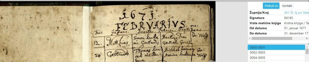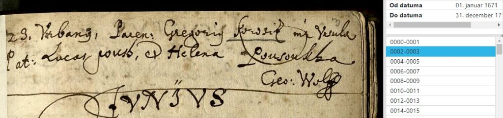 Ta zapis je iz leta 1672 v krstni knjigi kot starši.