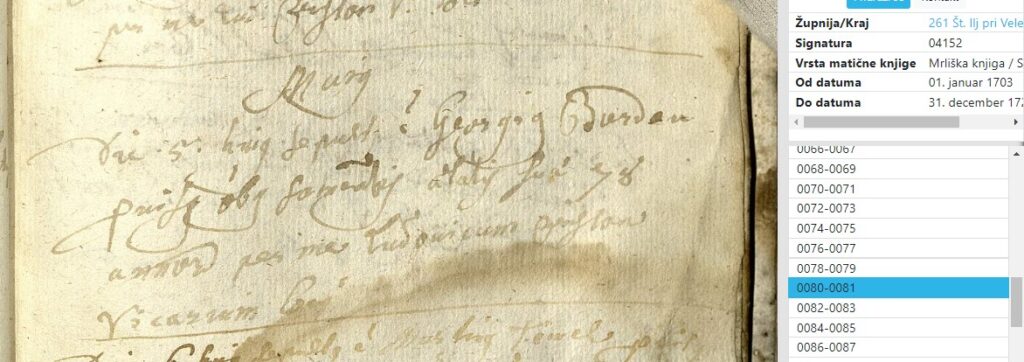 Da so Krušči bili tu doma dokazuje izpis iz knjige umrlih leta 1704.